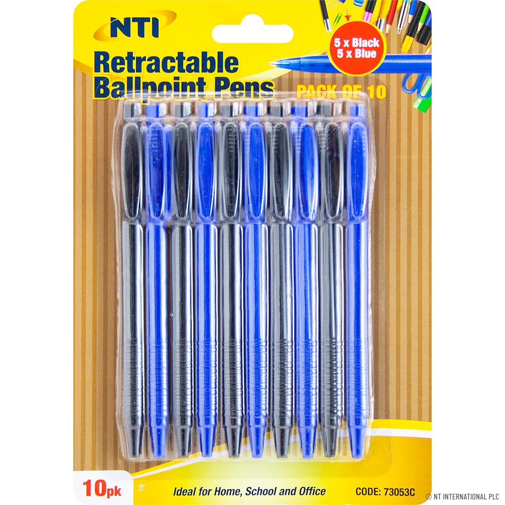 Retractable Ballpoint Pens – Blue/Black 10pk × 1